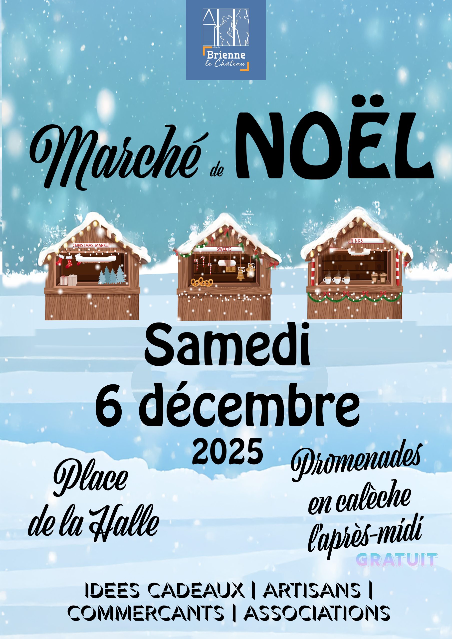 Le Marché de Noël se tient sur la place de la Halle, le samedi 6 décembre de 10h à 17h.